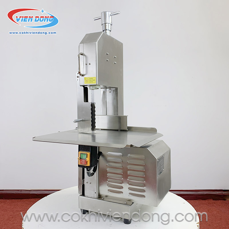Máy được trang bị cần đẩy xương giúp quý khách không lo đụng chạm vào lưỡi cưa khi vận hành máy. Ngoài ra, bạn cũng có thể dễ dàng thay đổi được độ dày lát cắt nguyên liệu. Khách hàng có thể căn chỉnh độ căng của lưỡi cưa trước khi sử dụng thông qua núm vặn bên hông máy.